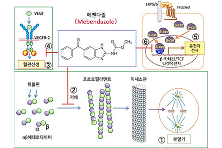 *메벤다졸은 VEGF 수용체인 키나제 활성을 억제하여 혈관 신생을 억제한다